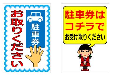 駐車券の案内、誘導などに関する貼り紙です。