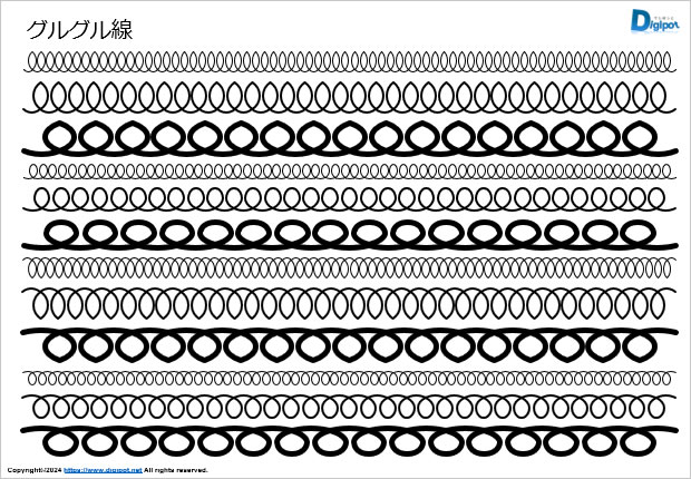 フリー、無料で使えるグルグル線画像です。パワーポイントPPTX形式、エクセルXLSX形式、ワードDOCX形式ファイルを用意しています。
