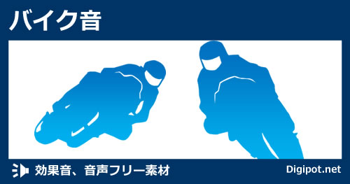 フリー、無料で使えるバイク音の音声素材です。MP3ファイル形式データ10種類です。