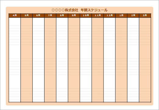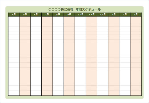 フリー、無料で使える年間予定表テンプレートです。会社の年間予定表などにご利用ください。4パターン用意しています。配色などは自由に変更してください。