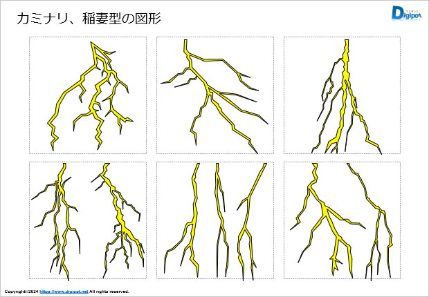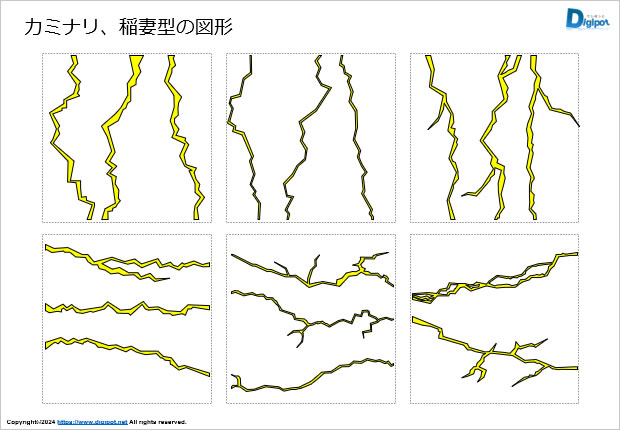 カミナリ、稲妻型、落雷、いかづち、横型、タテ型など