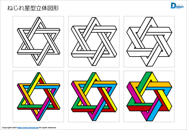 ねじれ星型立体図形(パワーポイント/エクセル/ワード)