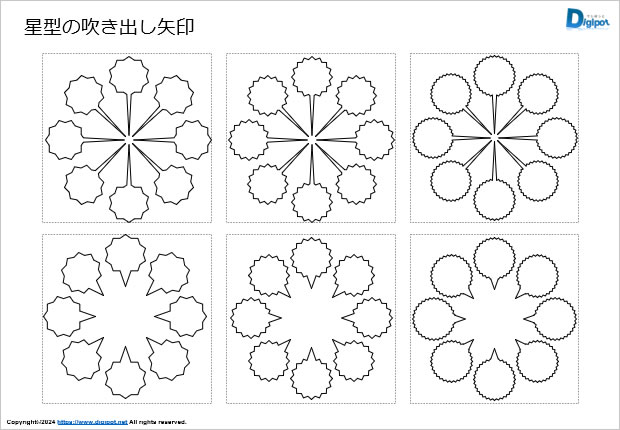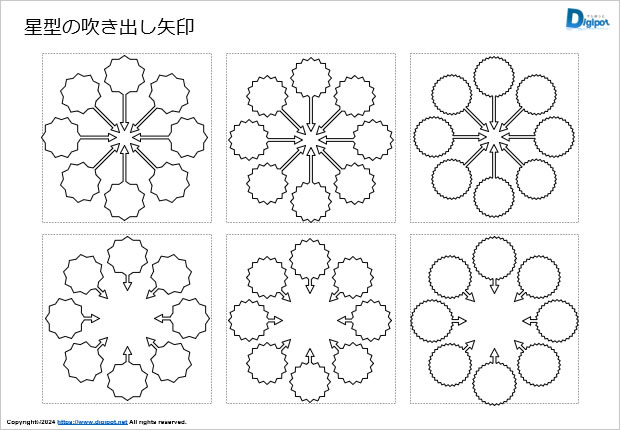 星型の吹き出し矢印図形です。説明図作成のパーツなどにご活用ください。