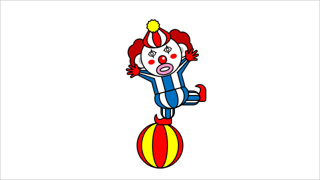 フタをワイプでフタを開いた後に、スライドインでピエロを表示させ、シーソーで揺れ