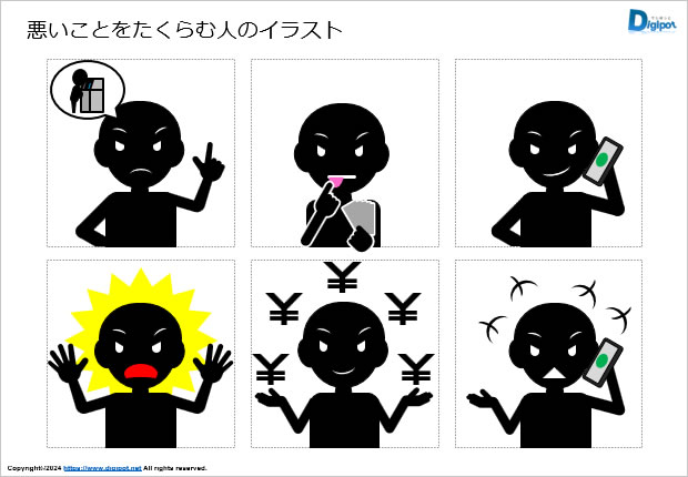 悪いことをたくらむ人のイラスト(パワーポイント/PNG画像/エクセル/ワード)