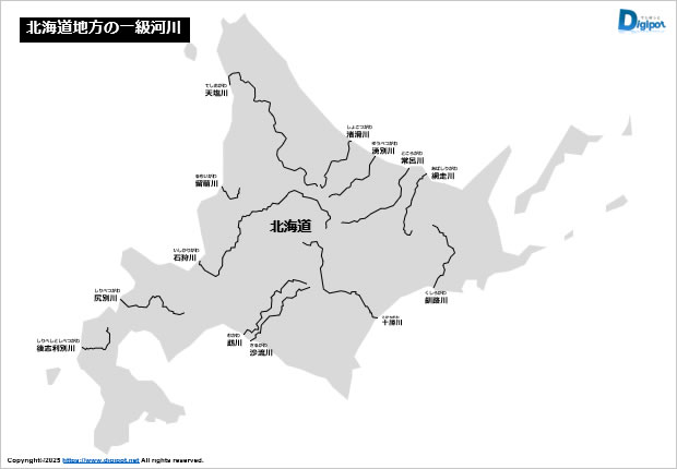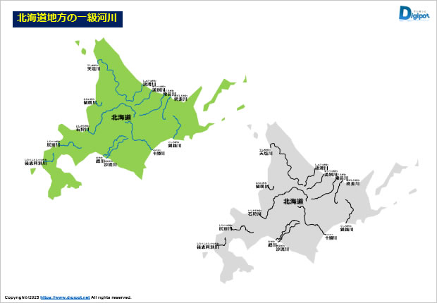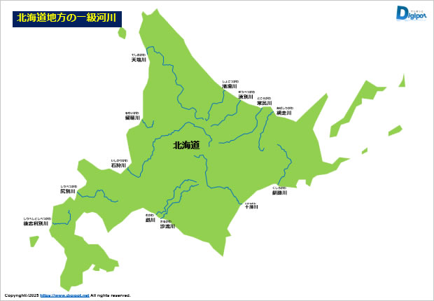 フリー、無料で使える北海道地方の一級河川です。パワーポイントPPTX形式で制作しています。