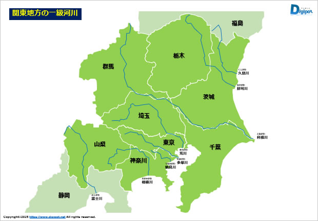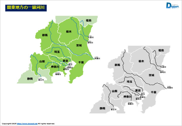 フリー、無料で使える関東地方の一級河川です。パワーポイントPPTX形式で制作しています。