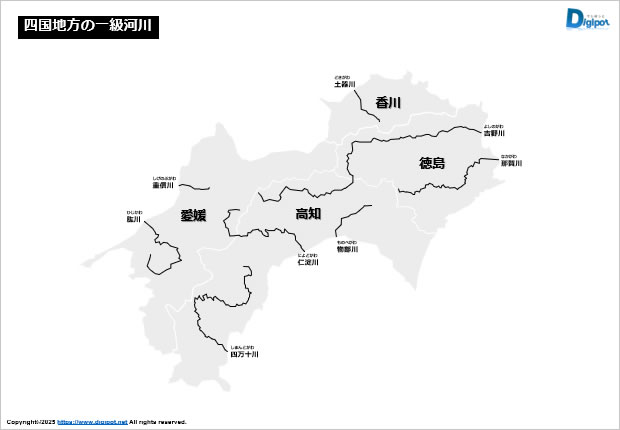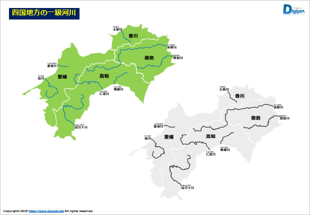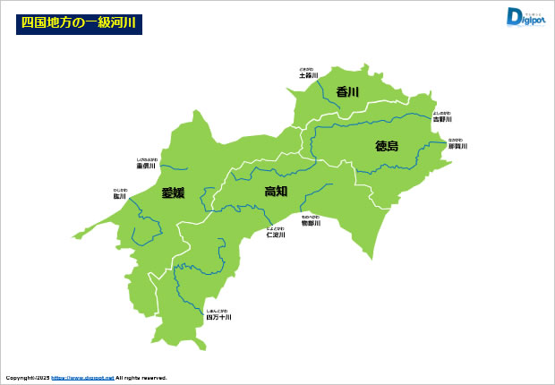 フリー、無料で使える四国地方の一級河川です。パワーポイントPPTX形式で制作しています。
