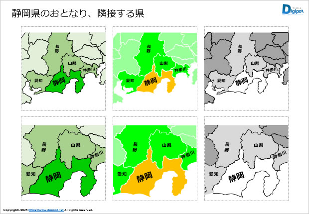 静岡県のおとなり、隣接する県のイラスト(パワーポイント)をダウンロードする