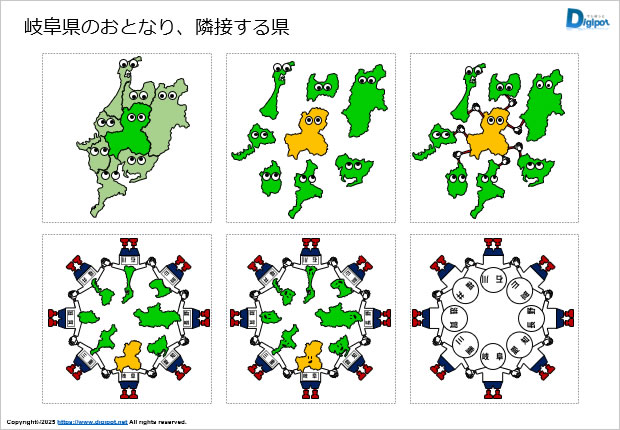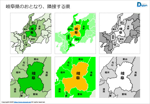 岐阜県のおとなり、隣接する県のイラスト(パワーポイント)をダウンロードする