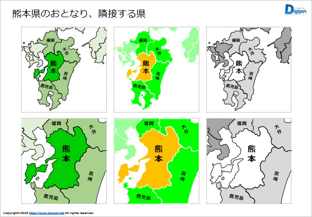 熊本県のおとなり、隣接する県のイラスト(パワーポイント/PNG画像)