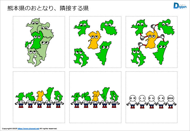 熊本県のおとなり、隣接する県のイラスト(パワーポイント)をダウンロードする