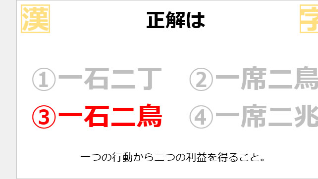 漢字クイズ~正しい四字熟語はどれ?~(パワポアニメ)をダウンロードする