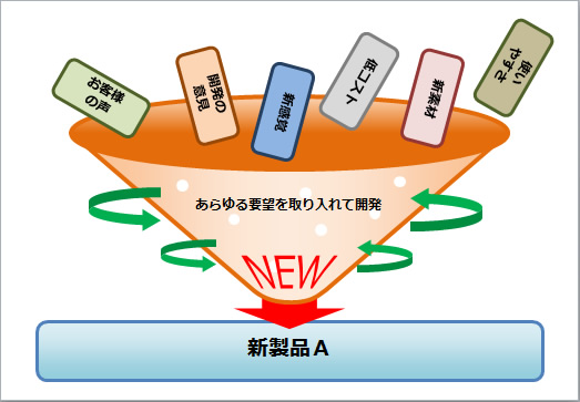 - 要素を混ぜ合わせて新価値を創出する商品開発の説明図に応用する。