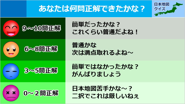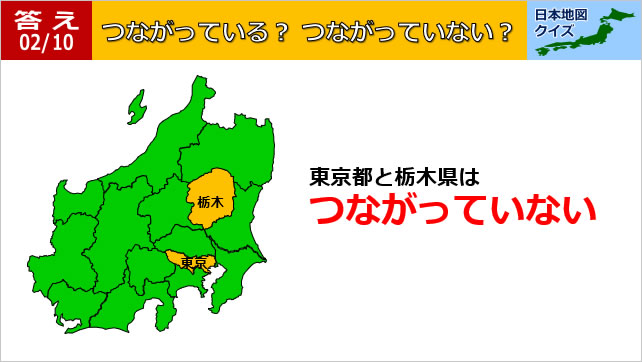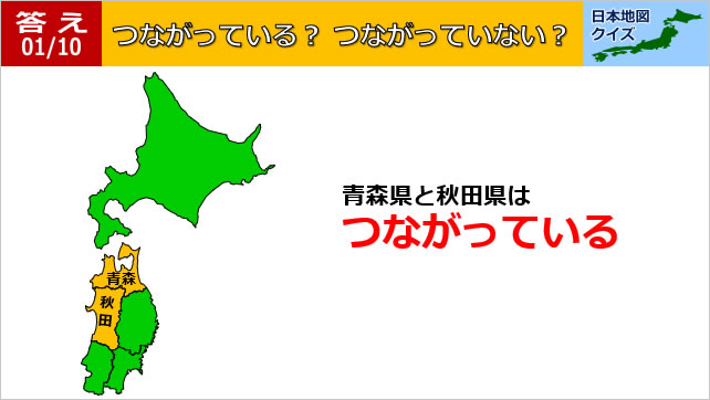 日本地図クイズ~この県とこの県はつながってる?~、出題と回答10問、最終画面の23スライド。