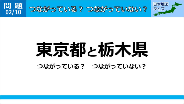 県と県がつながっているかを当てるクイズ用のコンテンツです。パワーポイントを使ったデジタルサイネージの番組素材などにご活用ください。問題の編集や表示時間の変更などは自由に行ってください。