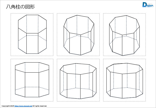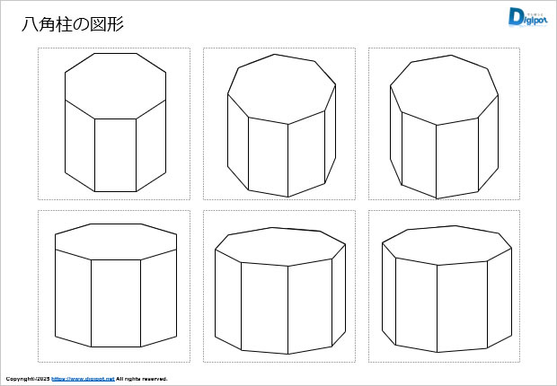 八角柱の斜め上から見下ろした図形です。学習素材等にご活用ください。