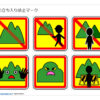 山の擬人化風のイメージです。歩いたり走ったり、季節感を見せたりなどです。山への立ち入りを訴える資料作成などにご活用ください。