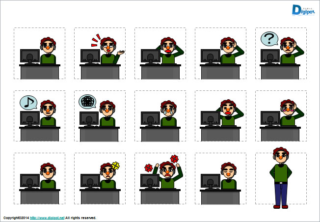 IT関連の資料作る場合は、オペレーターのイメージがよく必要になりますね。いろいろなパターン男性オペレーターです。シーンに合わせた挿絵などにご活用ください。