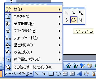オートシェイプの「線」→「フリーフォーム」を選択します。