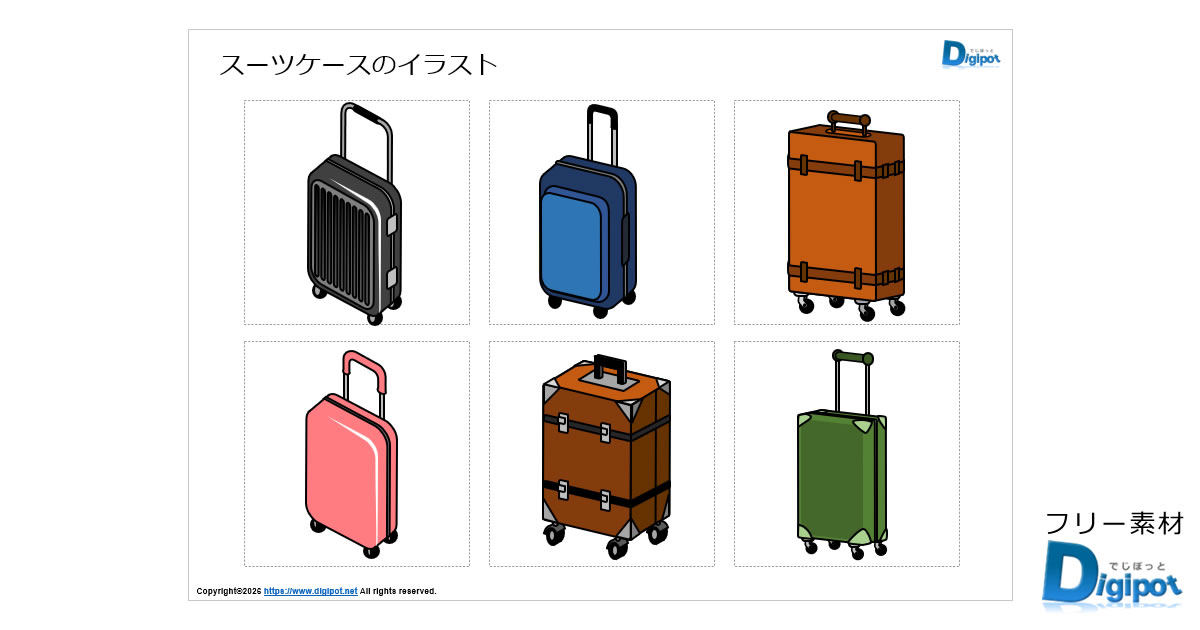 スーツケースのイラスト(パワーポイント/PNG形式画像/エクセル/ワード)