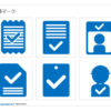 検査済、点検済マーク、チェックマーク、虫眼鏡マーク、青色ベース、黒色ベースなど12種類