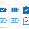 消毒済マーク、消毒ビンにチェック、消毒スプレーにチェック、青色ベース、黒色ベースなど12種類