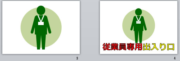 「従業員専用出入り口」の文字のみ、「従業員専用出入り口」とアイコン表示などA4縦/横