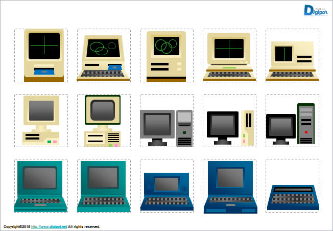 フリー、無料で使えるレトロ風PCのイラストです。PPTX形式、PNG形式画像で作成しています。