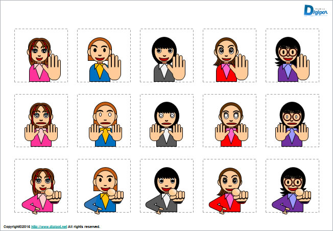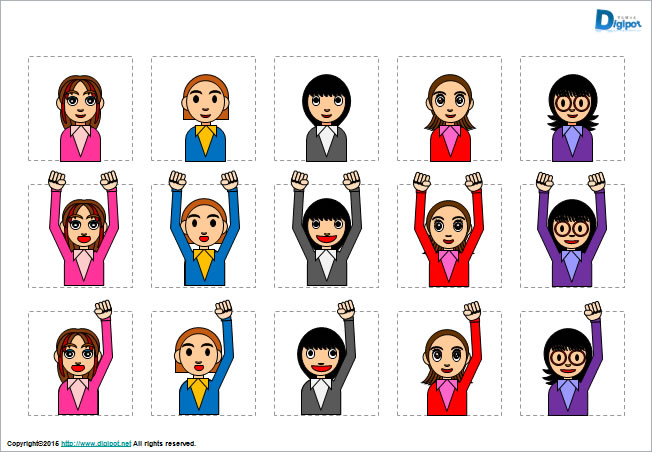 ビジネスウーマン、OL、女性社員のイラスト、両手を挙げる、片手を挙げるなど