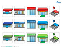 フリーで使えるパワーポイントの図形機能で作成したコンビニのイラスト画像です。PPTX形式、PNG形式画像で作成しています。