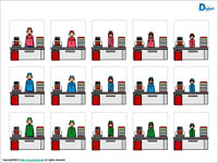 フリーで使えるパワーポイントの図形機能で作成したコンビニの店員のイラスト画像です。PPTX形式、PNG形式画像で作成しています。