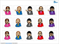 パワーポイントの図形機能で作成した、見ない聞かない言わないポーズのビジネスウーマンのイラスト画像です。PPTX形式、PNG形式画像で作成しています。