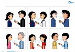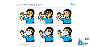 フリー、無料で使えるおしゃべりと感染イメージのイラスト画像です。パワーポイントPPTX形式、PNG形式画像で作成しています。24パターンあります。