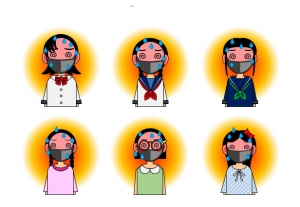フリー、無料で使えるマスクを外す人物のイラスト画像です。パワーポイントPPTX形式とPNG透明ファイル形式で作成しています。12パターンあります。