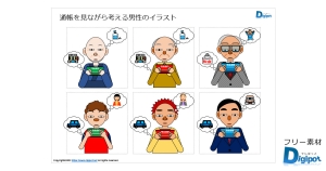 フリー、無料で使える考えない人、思考を放棄した人物のシルエット画像です。パワーポイントPPTX形式とPNG透明ファイル形式で作成しています。6パターンあります。