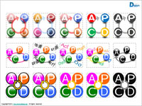 パワーポイントの図形機能で作成した、PDCAサイクルイメージ図です。PPTX形式、PNG透明画像形式、エクセル形式です。